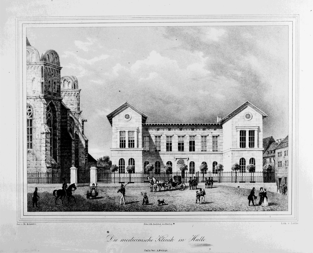The first hospital at the “Domplatz” (“Die Medizinische Klinik Halle” [Department of Medicine Halle]) in the second half of the 19th century. (Reprint with permission by the archive of the Martin Luther University Halle-Wittenberg, UAHW, Rep. 40 VII‑A, Nr. 283. All rights reserved)