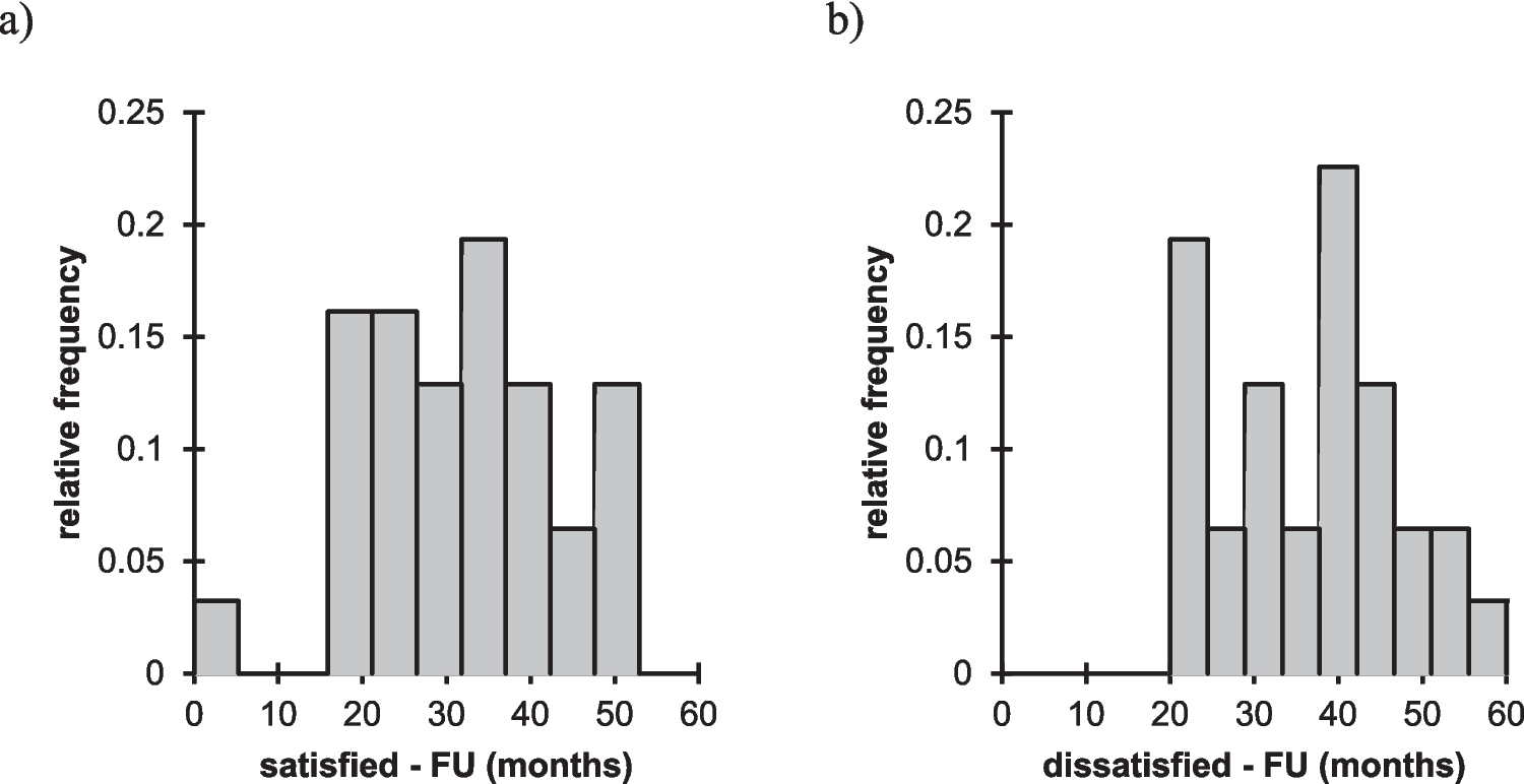 The ethics committee of Ärztekammer Berlin granted approval for the study. Data was collected retrospectively in an observational, non-interventional study design. In the present study we utilized available clinical data that were acquired from the electronic patient chart or obtained via questionnaires. All patients gave their written consent for a continued follow-up and for a scientific evaluation of the data in anonymous fashion. The data analysis was supported by a statistical expert. The data were analyzed and graphical output was generated using Excel 2013 (Microsoft Corp., Redmond, WA, USA) and XLSTAT version 2021.3.1 (Addinsoft, New York, USA). As this is not a hypothesis-based study, formal case number planning was not applicable.