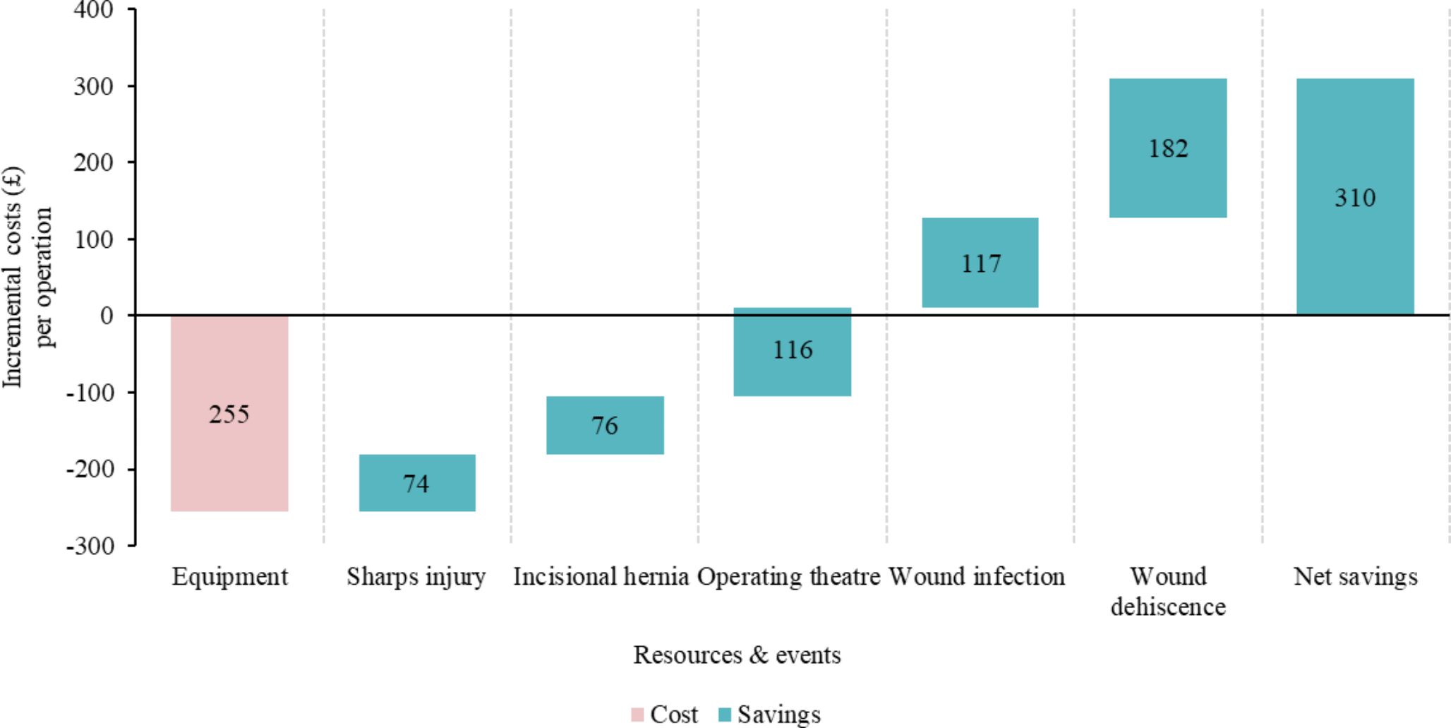 The unit cost of wound infection emerges as the highest among considered surgical complications across all studied countries, except France where it is the second highest after incisional hernia. Notably, the unit cost of incisional hernia exceeds that of wound dehiscence in Sweden and France, while the reverse is true in the US and UK. This variation in cost distribution leads to slight differences in overall net savings across different countries. These nuanced differences underscore the well-established importance of contextually valid event rates and unit-cost data if the analysis is to effectively inform decision making [