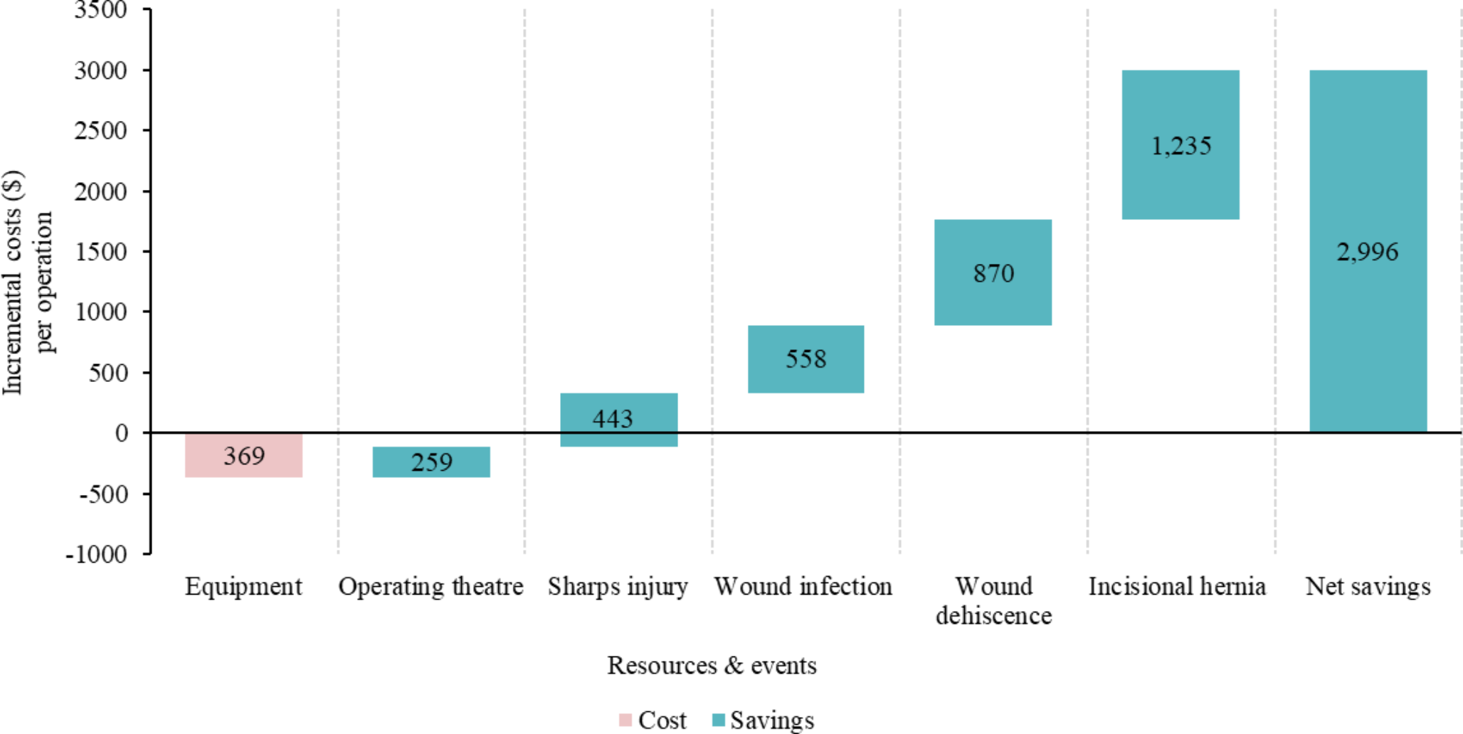 17]. If this rate reflects international practice, our analysis indicates our results are conservative, particularly with respect to savings associated with avoided surgical complications. No other studies were found that reported small-bites rates. Clinical settings with higher proportions of small-bites will see less savings in terms of avoided complications and more gains associated with time savings. The opposite would be true when large-bites are the dominant practice, and, importantly, these changes in savings are sensitive to variation across clinical contexts with respect to surgical complication rates and suture time. The time improvements associated with the use of SutureTOOL will also vary across contexts depending on surgical methods, the experience of clinicians, and unit costs of resources. Another key assumption included the limited time horizon and subsequent exclusion of long-term complications. As a result, the actual survival benefits could exceed the reported values, further emphasizing the potential positive impact on patient outcomes when the SutureTOOL is adopted for use. Finally, at the core of this analysis is the SutureTOOL’s ability to effectively produce SL/WL of at least 4 with small-bites suturing, reduce suture time and protect users from sharps injury. Sharps injuries often occur at the end of long and sometimes strenuous procedures, and the risk increases with 22% per hour as an operation proceeds [