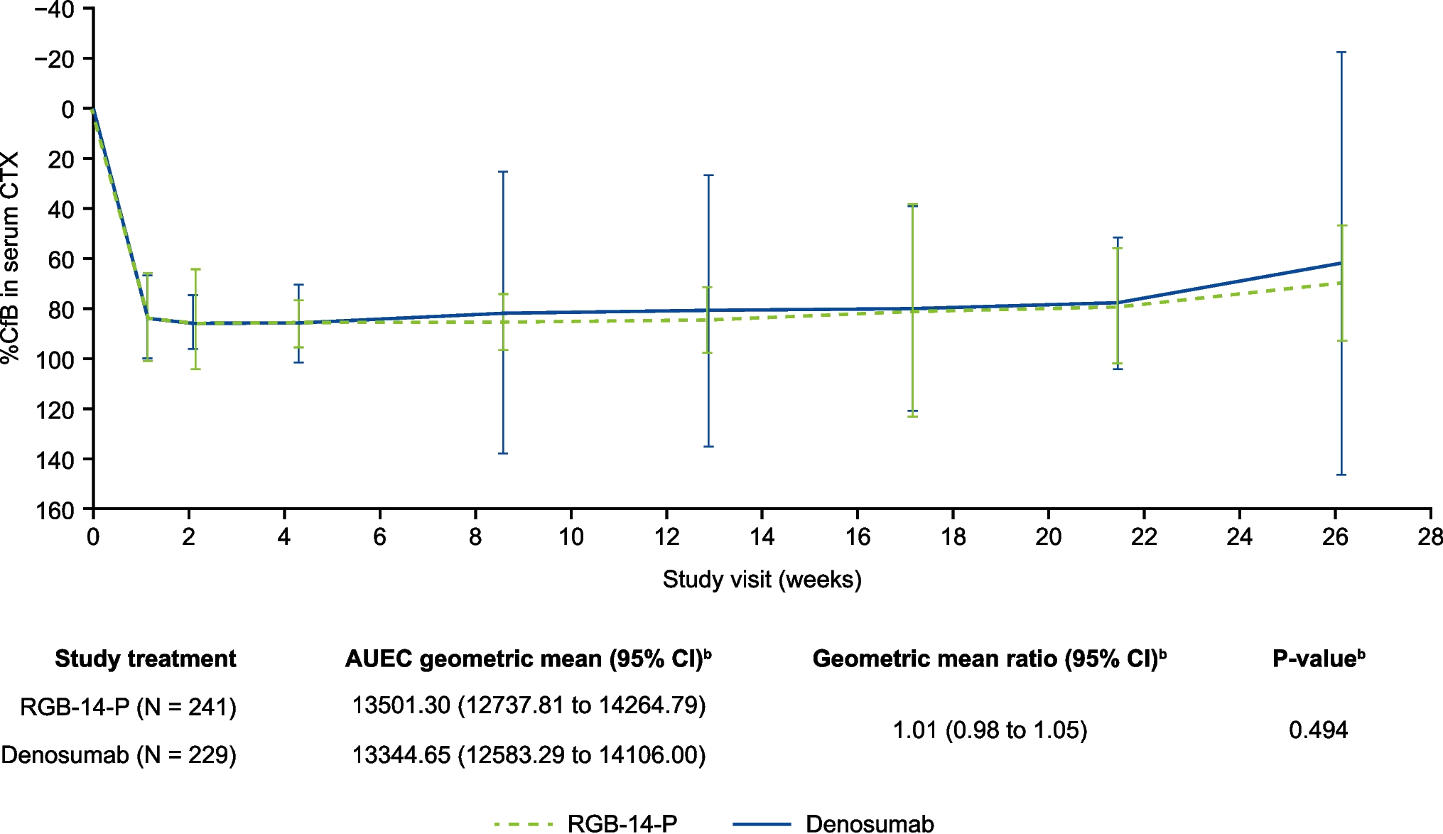 Mean serum CTX levels, ng/mL (SD)b | 0.51 (0.22) | 0.51 (0.22) |