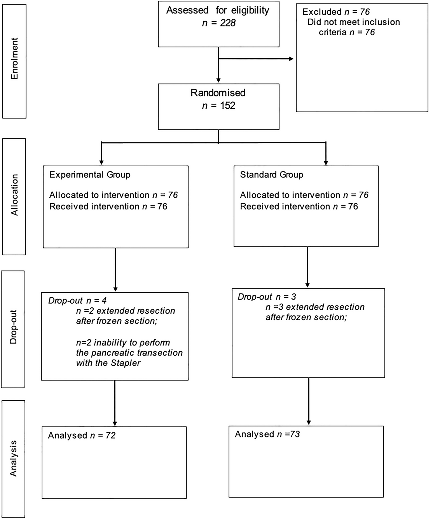 Pancreatic neck | 104 (72) | 50 (69) | 54 (74) |