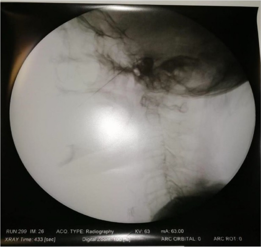 Videolaryngoscopic view allowed tracheal intubation of all patients with DSE > or = 2.5 cm and in 96.23% as a first attempt. There was no impossible intubation in this group of patients.