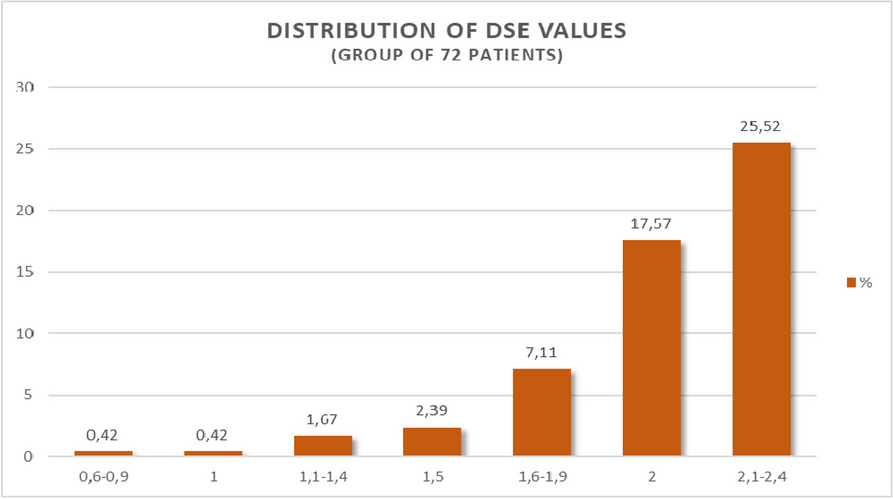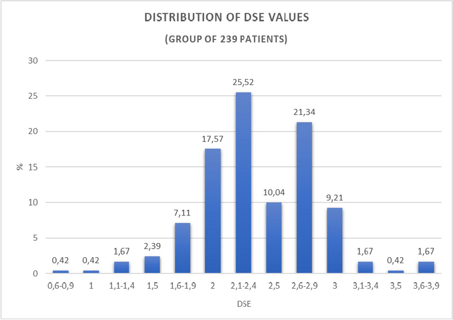 The most frequently observed value of DSE is between 2.1 and 2.4 cm (25.52%) (Graphic 1).