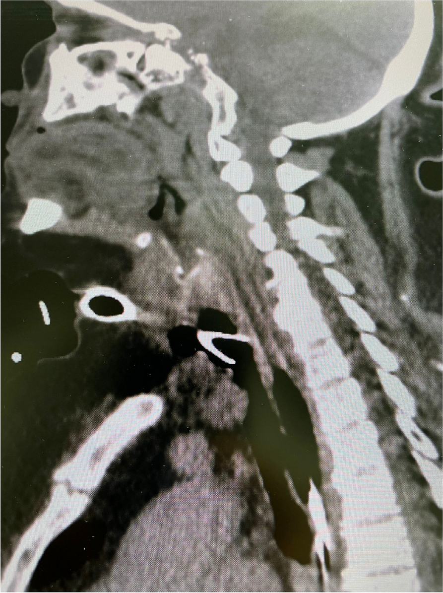 Among patients with DSE > or = 2.5 cm, 22.64% presented a neck circumference < 40 cm, while 77.36% > or = 40 cm. 42.86% of patients with DSE < 2.5 cm had a neck circumference < 40 cm and 57.14% > or = 40 cm.