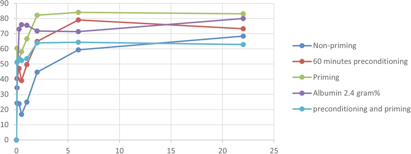 A limitation of the in vitro studies currently performed is that they primarily focussed on the question if insulin administration should be proceeded by priming, adding albumin or non-priming to get a sufficient insulin steady-state concentration and which variables influence the adsorption process of insulin on the line. It is yet unknown which exact concentration or which appropriate priming volume is needed to reach a sufficient insulin steady-state concentration.