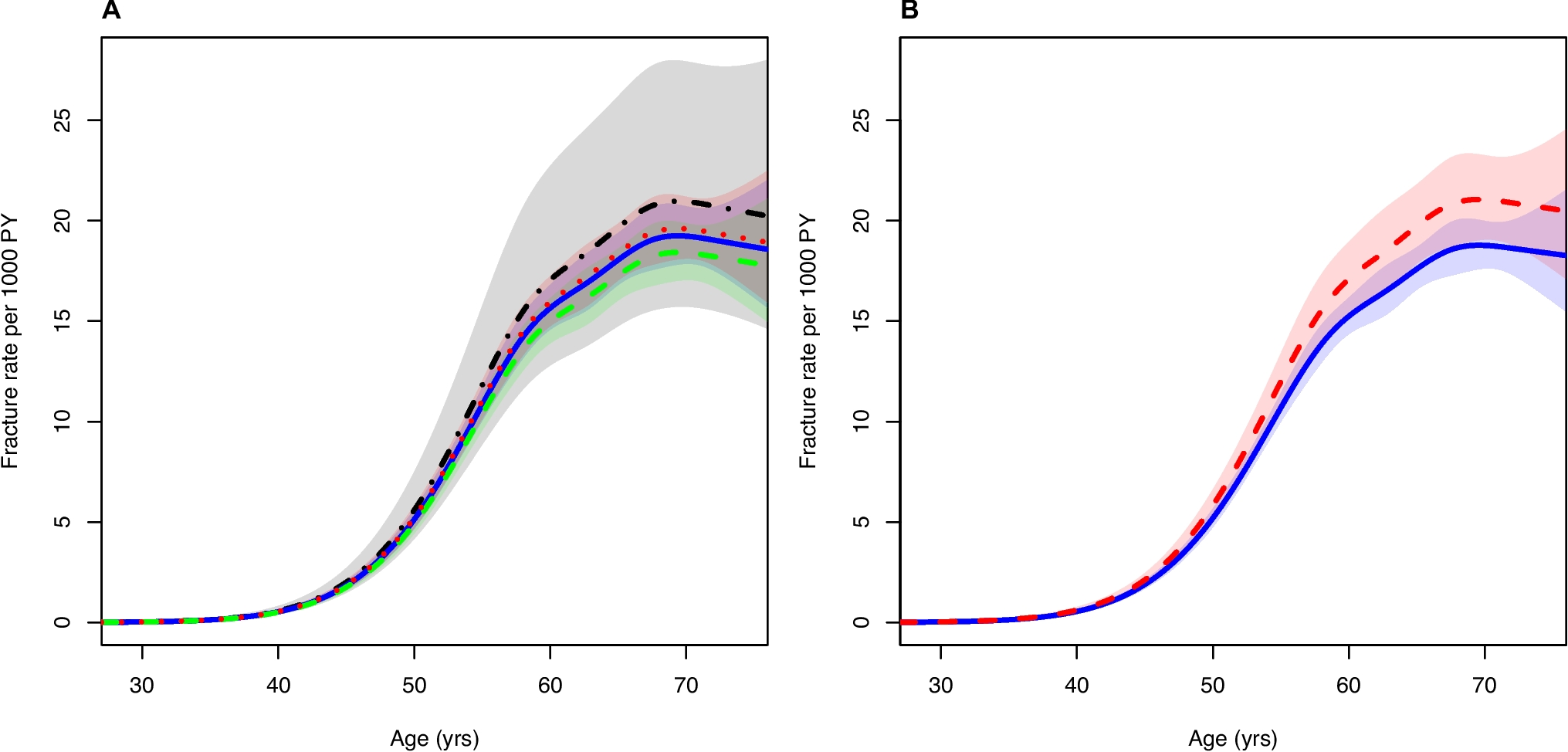 Extending follow-up beyond age 76 is another priority, given that fracture risk continues to rise with age; research is needed to determine whether the patterns observed here persist or change beyond age 80.