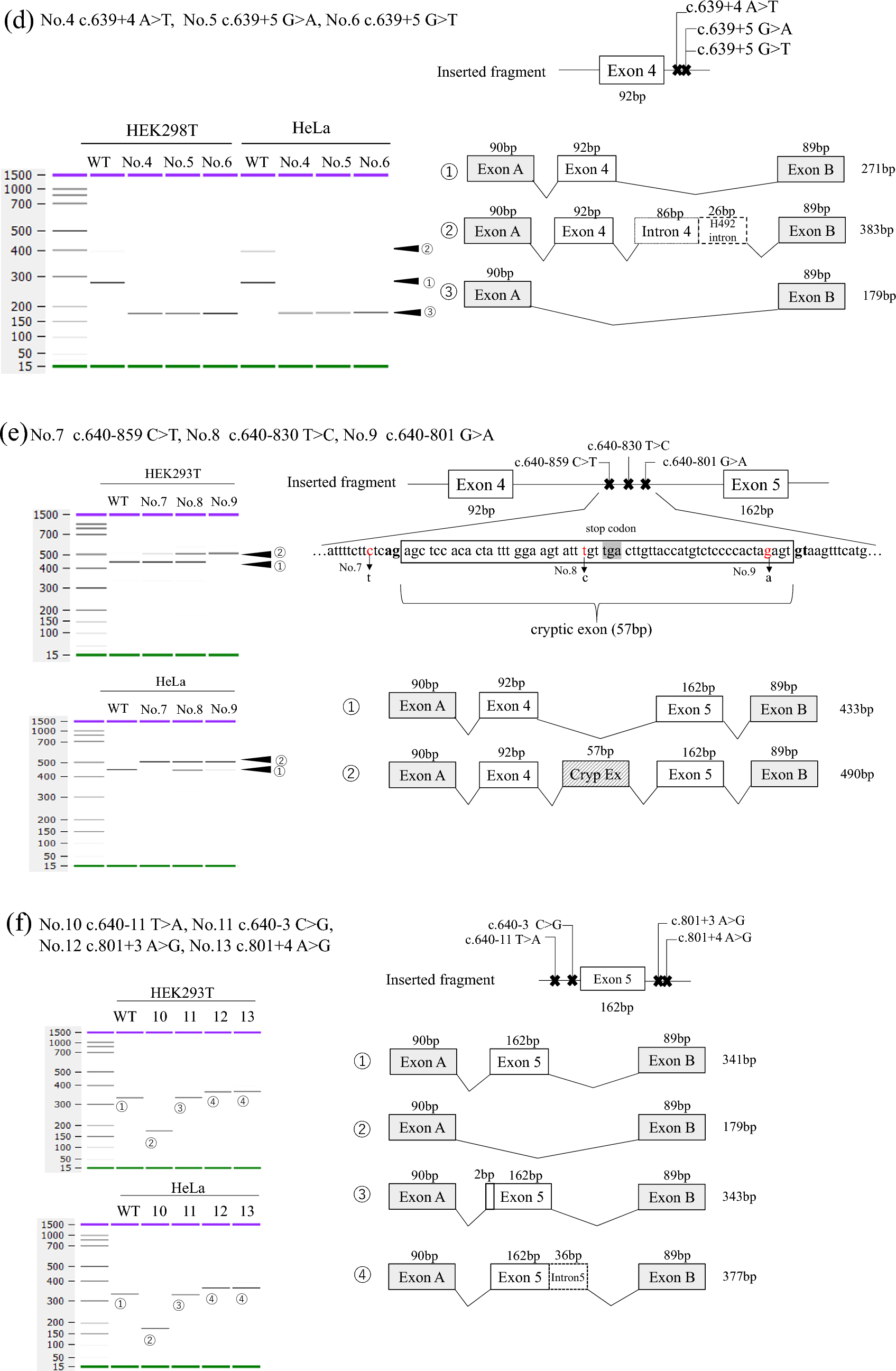 in vivo validation using patient samples was insufficient other than that for no. 9. Finally, as the hybrid plasmids used for the minigene splicing assay were constructed artificially, the assay did not always imitate the