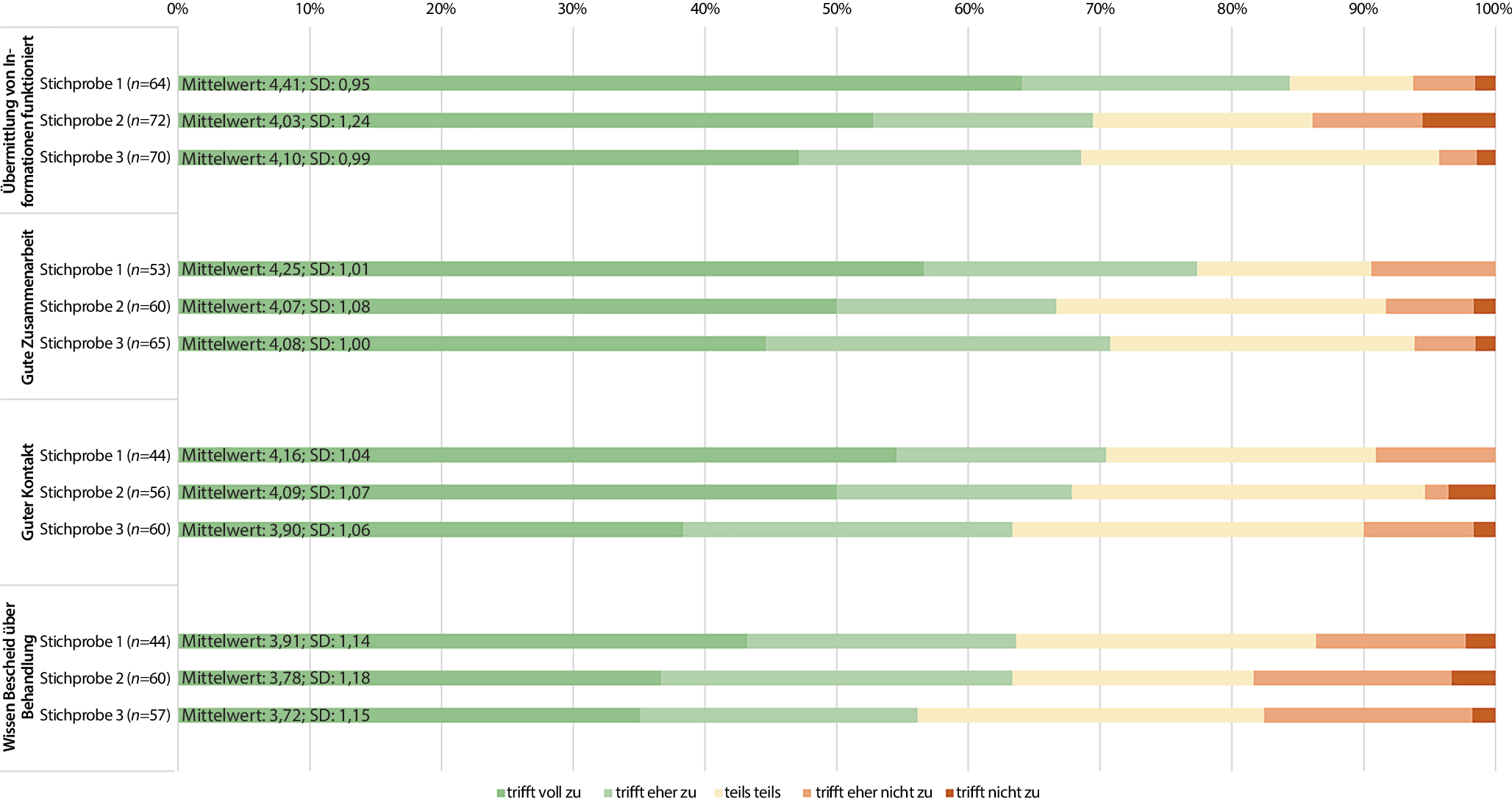 17]) sowie die wahrgenommene Kooperation am Zentrum. Neben (meist 5‑stufigen) Likert-Skalen waren auch Freitextantworten möglich. Es erfolgte ein Prätest mittels „