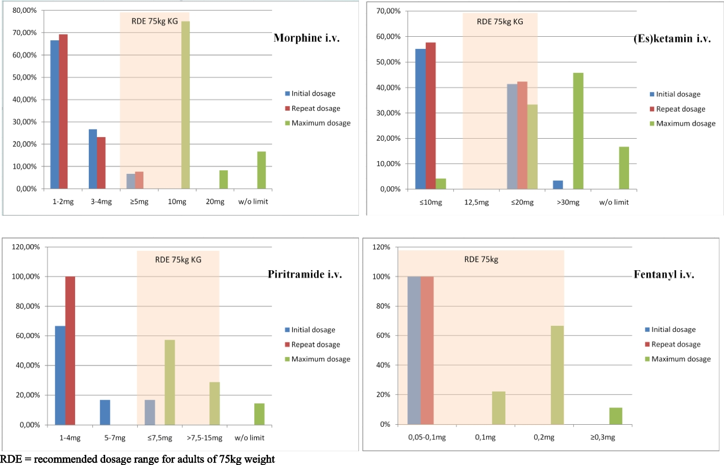 This study also showed that the doses of analgesics approved for emergency paramedics were in most cases significantly below the recommendations for adults (RDE) [32] (Fig. 1).
