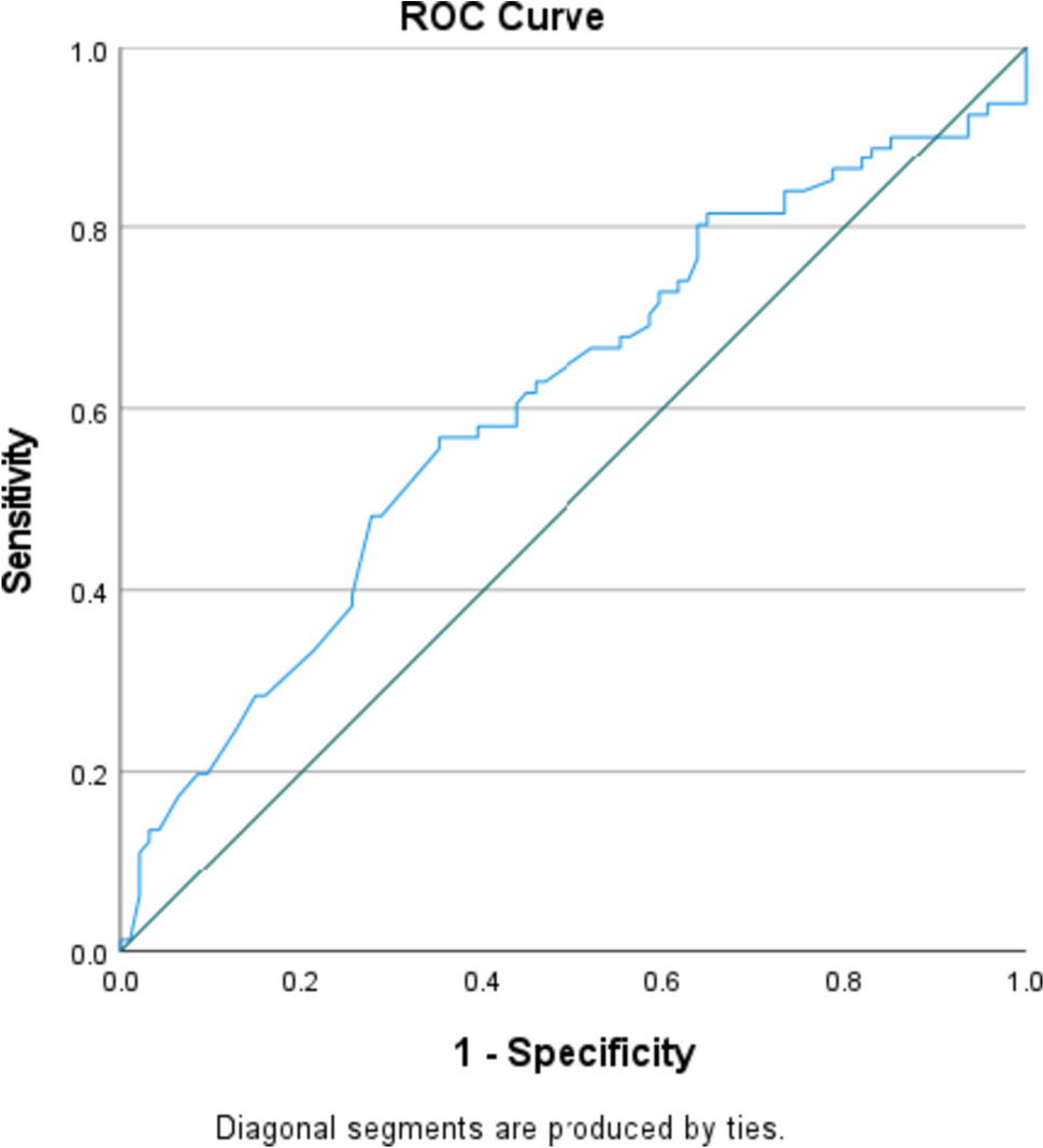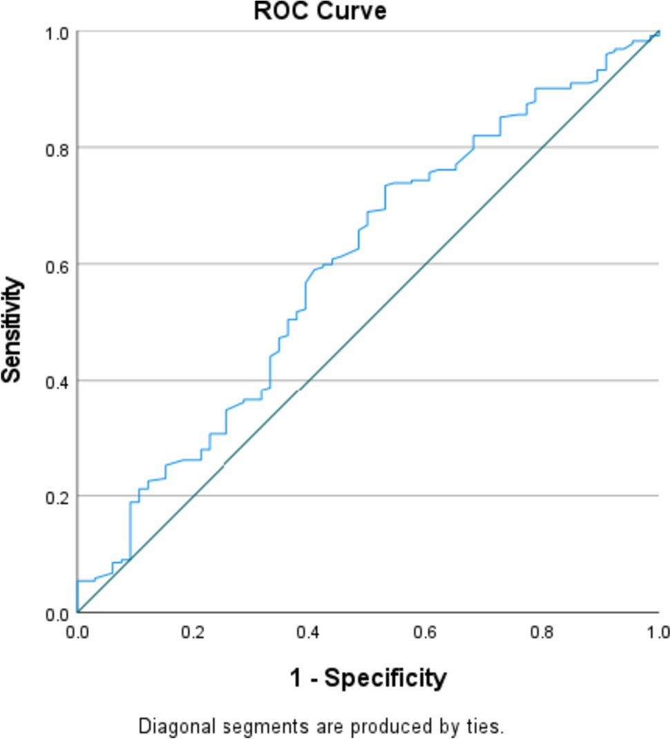 ROC curve analysis for predicting the sensitivity and specificity of diagnostic LCR regarding therapy response generated an area under the curve (AUC) value of 0.607. Utilising a diagnostic LCR value of 1.87 generated a sensitivity of 58% and 1-specificity value of 39.4%.