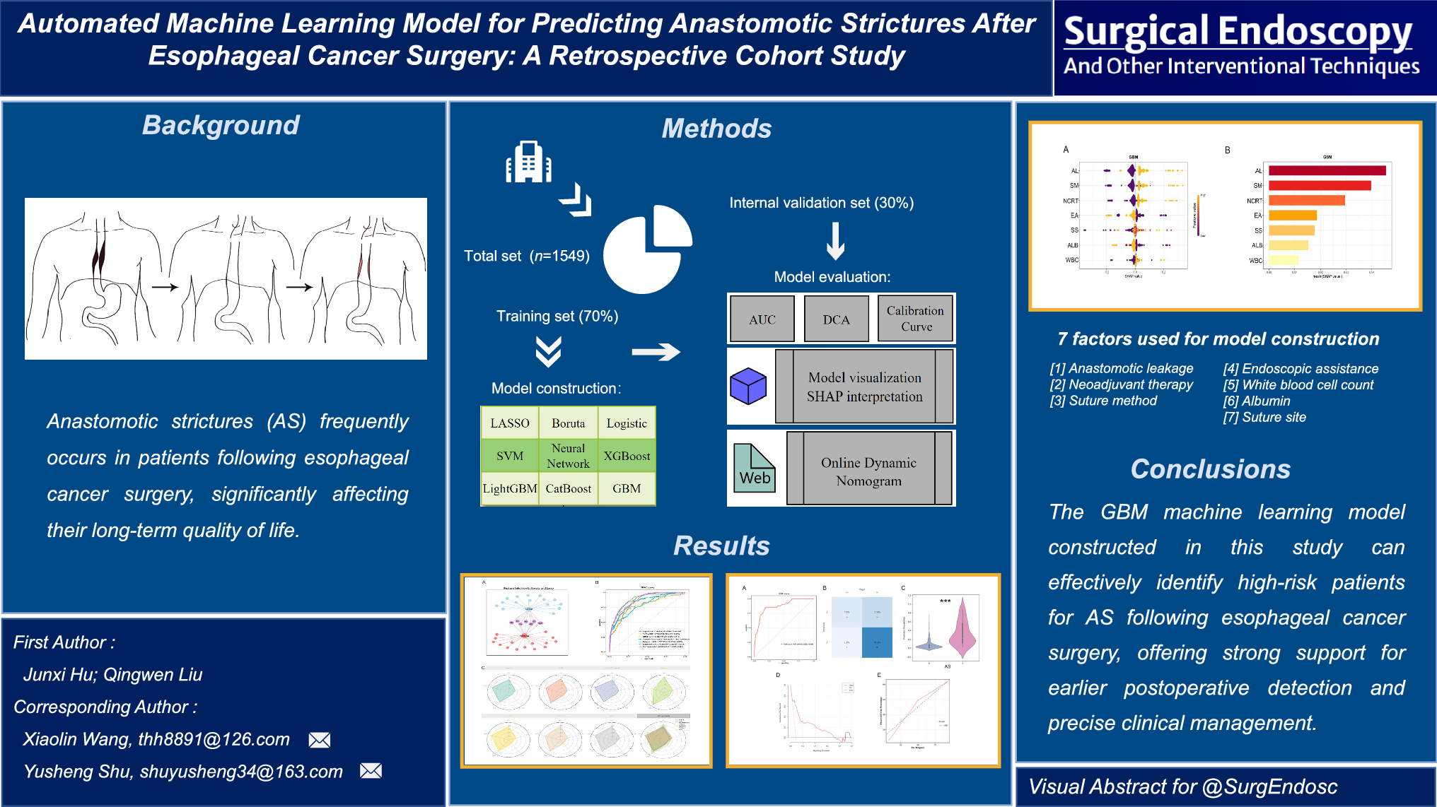 - Automated machine learning model for predicting anastomotic strictures after esophageal cancer surgery: a retrospective cohort study
