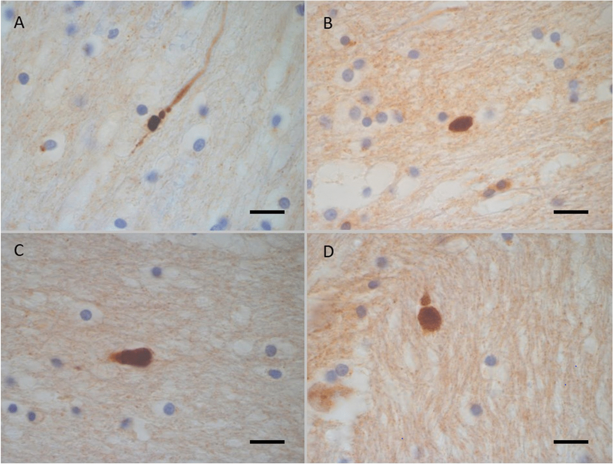 26 | 25 M | Deep scalp bruises | 34 h | Brain haemorrhages including petechial haemorrhages in cerebral white matter, cerebellum and braistem | 1410 g | -ve | + | + | -ve | -ve | |
