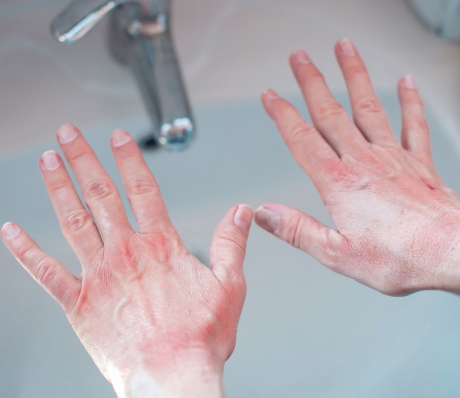 Beim chronischen Handekzem ist unter anderem Aufklärung zu schonendem Händewaschen nötig.