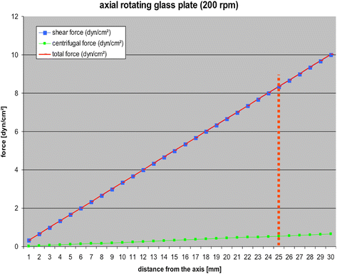 26] that are present in the area in between the upper and lower plate. To define the most favourable position of the cell-bearing surface, computerised simulations were performed. Herein, it could be demonstrated that rising shear forces along the plate surfaces’ (0–2 dyn/cm