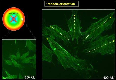 31]. However, the manual approach of analysing the actin fibres’ orientation has to be stated as a drawback of the present study, since it does not meet the requirements of a valid measurement. Immunofluorescence microscopy is largely a qualitative, or semiquantitative, approach with a limited capability of precise fibre differentiation and/or quantification since standard binary thresholds failed to exhaustively segment all fibres because of their wide variations in intensity and background levels [