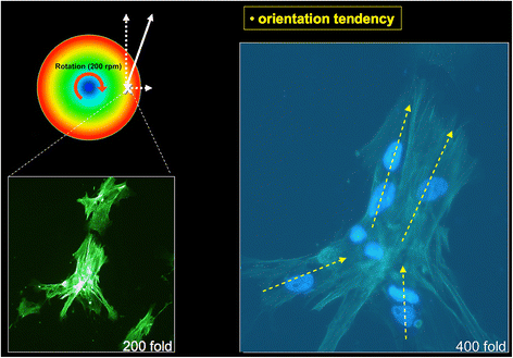 2 in the periphery) to meet the requirements of an osteoblast-stimulating laminar flow chamber. Further on, the simulations indicated that the flow profile in between the two plates was not influenced by peripheral turbulences alongside the peripheral regions. To verify a cellular realignment towards the shear direction, cells were microscopically examined prior and after exposure to shear forces for 24 h upon a spinning disc at a speed level of 200 rpm. Even if not sufficiently meaningful alone, observing changes in osteoblast cell morphology are still appropriate methods to verify the good usability of a flow chamber for the generation of reproducible FSS. Although not statistically significant, a tendency of cellular realignment towards the liquid flow direction was demonstrated. Similarly, several studies have revealed characteristic changes of osteoblast morphology triggered by fluid shear stress, which depends on exposure time and strength [