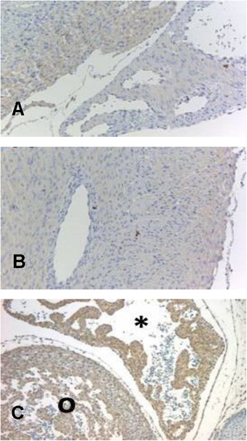 For immunohistochemistry, whole hearts and brains were fixated in formaldehyde (Merck & Co., Inc., Whitehouse Station, NJ, USA) for 24 h. For immunohistochemistry from embryonic tissue, whole embryos were fixated in formaldehyde for 24 h, respectively. After initial fixation, tissue was divided into two halves according to the desired direction of slicing and fixated with formaldehyde for another 24 h.