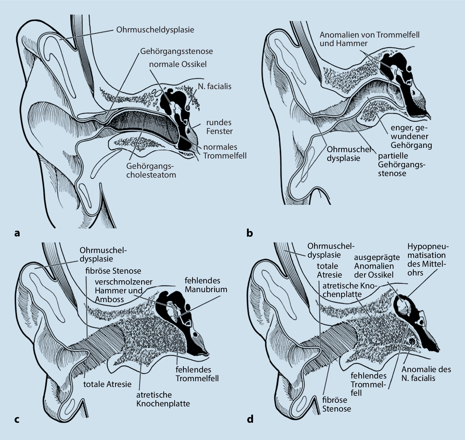 Während die (Fehl‑)Bildung der Ohrmuschel embryologisch zwischen der 4. und 12. Gestationswoche geschieht, erfolgt eine (fehlende) Kanalisierung des Gehörgangs erst in der 28. Schwangerschaftswoche.