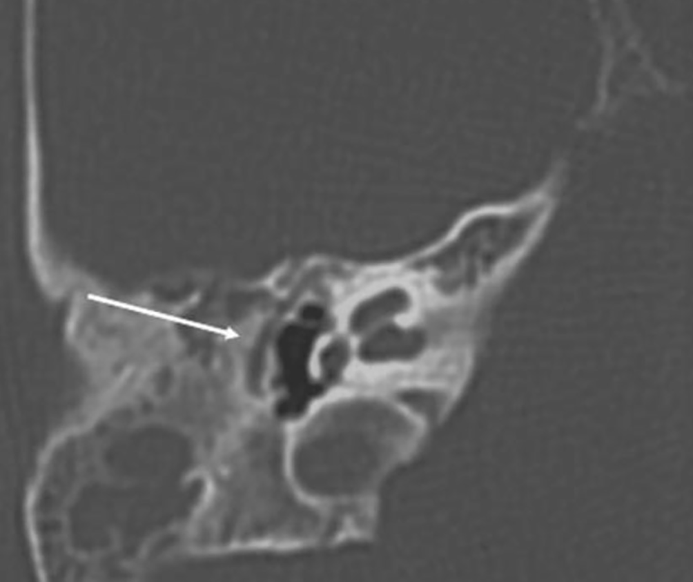 Nachweisbare Struktur in hochauflösender Computertomographie (CT) des Felsenbeins