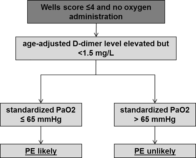 9], we were able to show that a significant number of CTPA can be avoided by combining the Wells score with standardized PaO