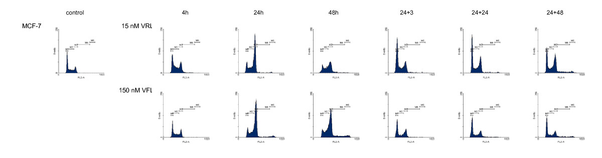 - Firstly, the effect of VRL or VFL on the cell cycle was investigated. For these experiments, cells were incubated for 24 h with specified concentrations of VRL or VFL (0–50 nM/0–400 nM) and flow cytometry was performed immediately after incubation.