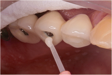 Ceramic surfaces can be modified by silicate blasting or acid etching procedures to achieve a reliable adhesion [26, 27]. Hydrofluoric acid treatment has also been recommended but demands considerable precautions [28]. Clinically, decontamination by ultrasonic device during these procedures cannot be done easily [29]. It is also important to reduce clinical steps for access-hole filling.