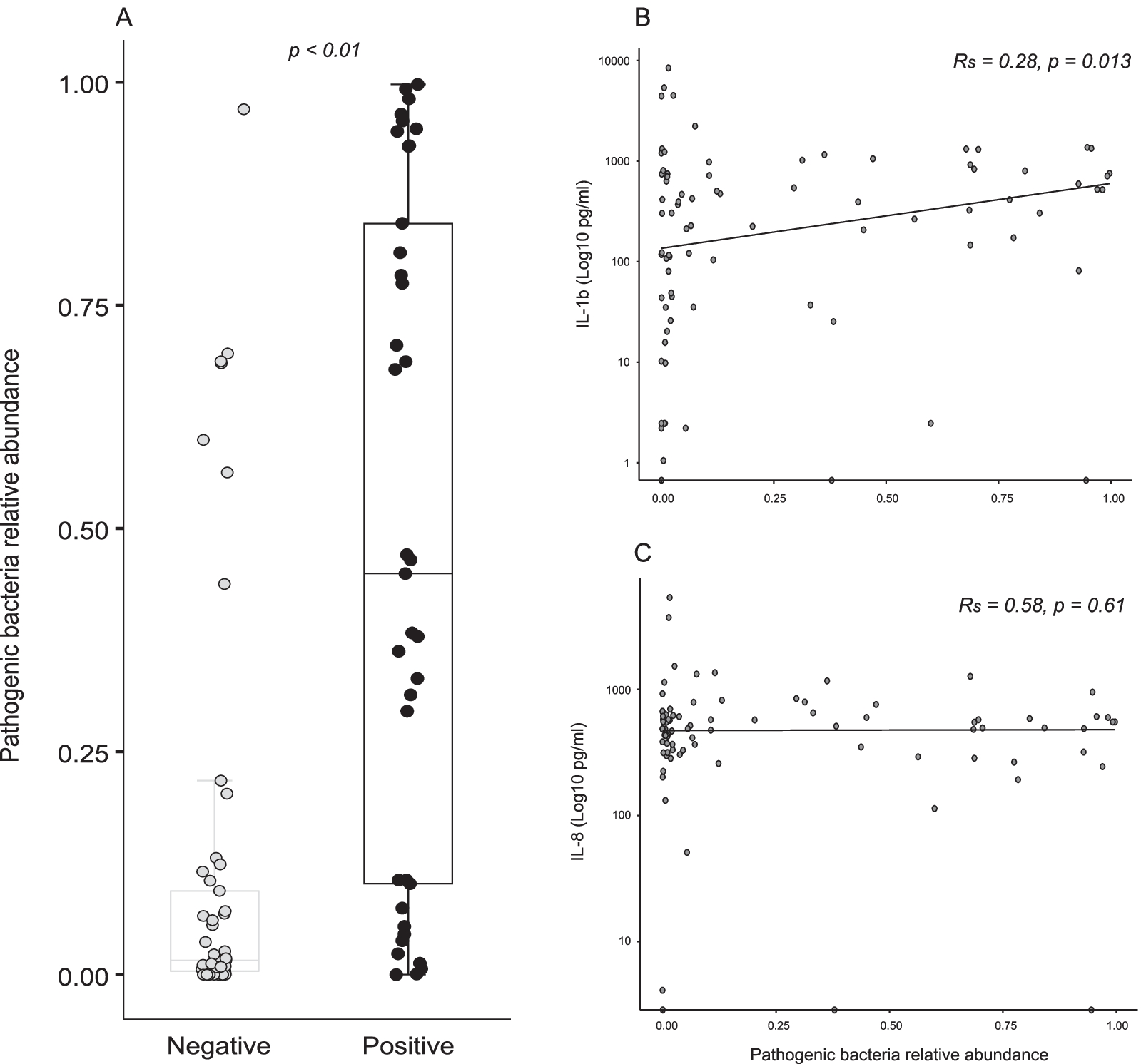 30] and days of mechanical ventilation (MV) before clinical suspicion of VAP. To assess diagnostic potential of diversity measures, the area under the receiver operating characteristics curve (AUROCC) was used. Spearman’s rank correlation was used to assess (I) the correlation between alpha diversity measures and inflammatory biomarkers (IL-1b and IL-8) and (II) the presence of pathogenic bacteria and inflammation. For the pathogen identification and specific analyses, AUROCC was calculated and used to identify an optimal relative abundance threshold with a predefined sensitivity of at least 99% [