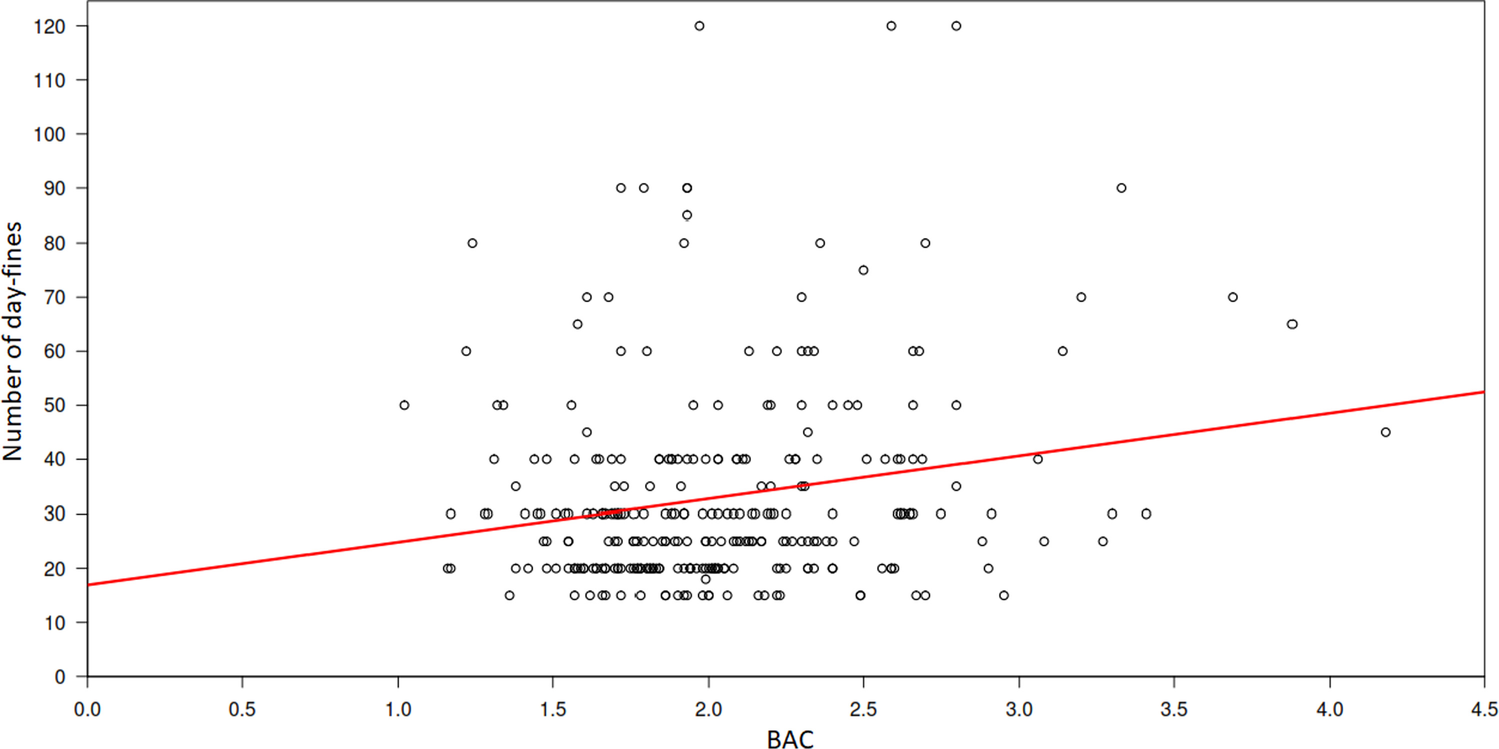 Correlation between BACs (x-axis) and day fines (y-axis)