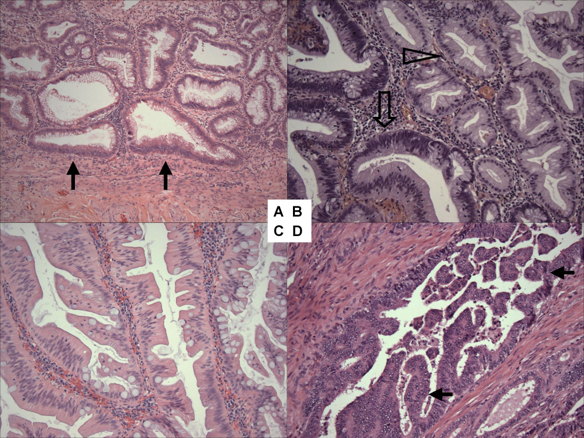 Adenoma with intramucosal carcinoma | 7 | 3 (43%) | 1 (14%) | 3 (43%) | 4 (57%) |