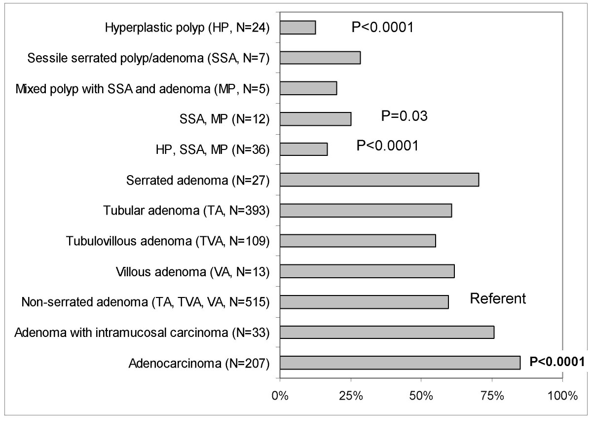 Tubular adenoma (TA) | 192 | 76 (40%) | 57 (30%) | 59 (31%) | 116 (60%) |