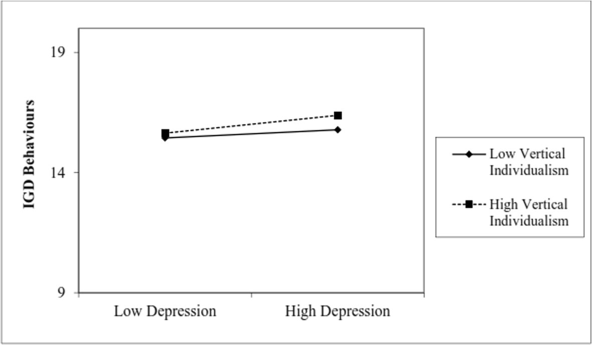 However, the specific effect that broader cultural dimensions, and especially vertical individualism, may have on such gender-related game motivations is yet to be understood empirically. This is important as literature has suggested that in more vertically individualistic cultures, combined motivations of achievement and competition may be exacerbated in male gamers (Beard & Wickham, 2016; Stavropoulos et al., 2019c). In this context, differences in gender motivations may culturally vary the established association between depression and DG symptoms (Laconi et al., 2017; Stavropoulos et al., 2019d). Thus, to shed light on these complex relationships, the present study considers the impact of gender on the potential moderating effect of higher vertically individualistic tendencies in the association between depressive mood and DG behaviors.