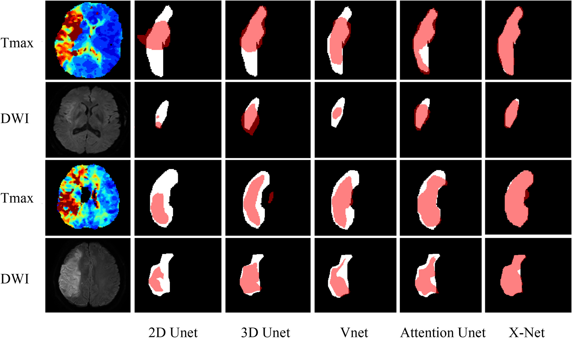 • The X-Net model had the highest Dice and achieved performance close to manual labeling in segmenting lesions of acute stroke.