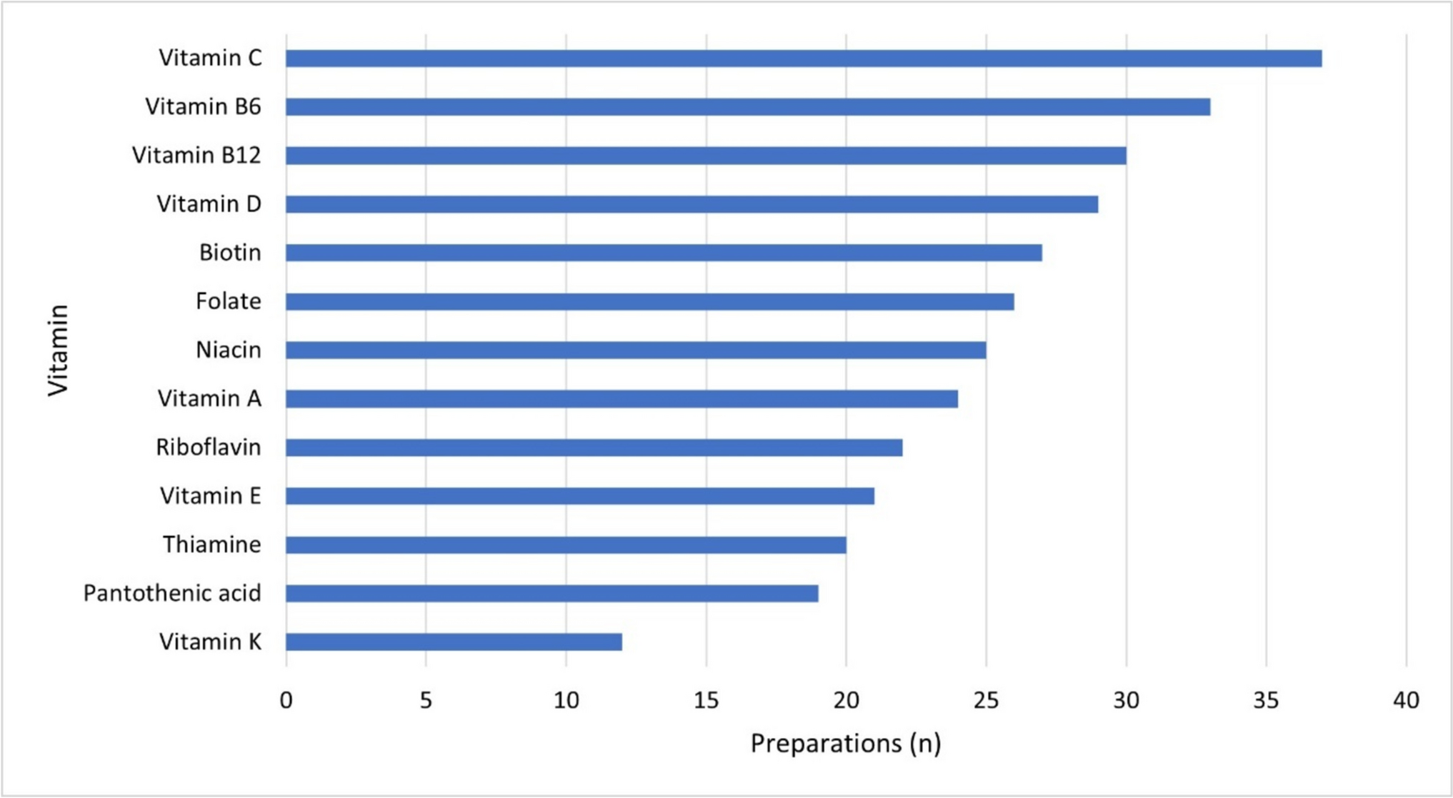 In contrast to other studies, which primarily deal with the product information of dietary supplements, communication strategies and advertising strategies on social media (s. Basch et al. 2016; Denniss et al. 2023;Nath et al. 2024; Pilgrim and Bohnet-Joschko 2019; Zamil et al. 2022), this study is the first to analyze the individual active ingredients and their dosages of the dietary supplements advertised by German influencers. The dosages of vitamins and minerals are examined using scientifically based reference values. These include the maximum daily intake recommendations of the BfR, the daily reference intake recommendations of the BfR and Verordnung (EU) Nr. 1169/2011, and the upper intake levels (UL) published by the EFSA. Particular attention is paid to preparations whose active ingredients exceed the reference values. The possible toxic effects of the overdosed vitamins and minerals are discussed based on the existing literature.
