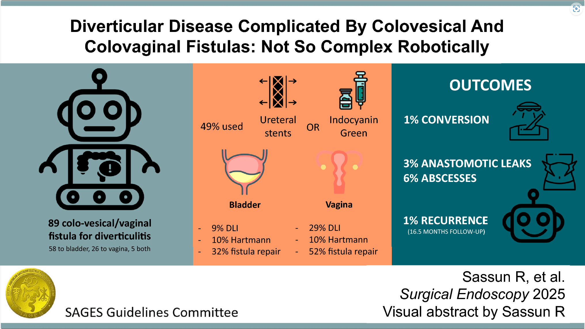 All consecutive patients diagnosed with diverticulitis complicated by a colovesical or/and colovaginal fistula who underwent robotic surgical resection at Mayo Clinic Rochester (January 2018-June 2024) were included. Exclusion criteria were concurrent Crohn’s disease, colorectal cancer, isolated coloovarian fistula, and less than one month of follow-up.