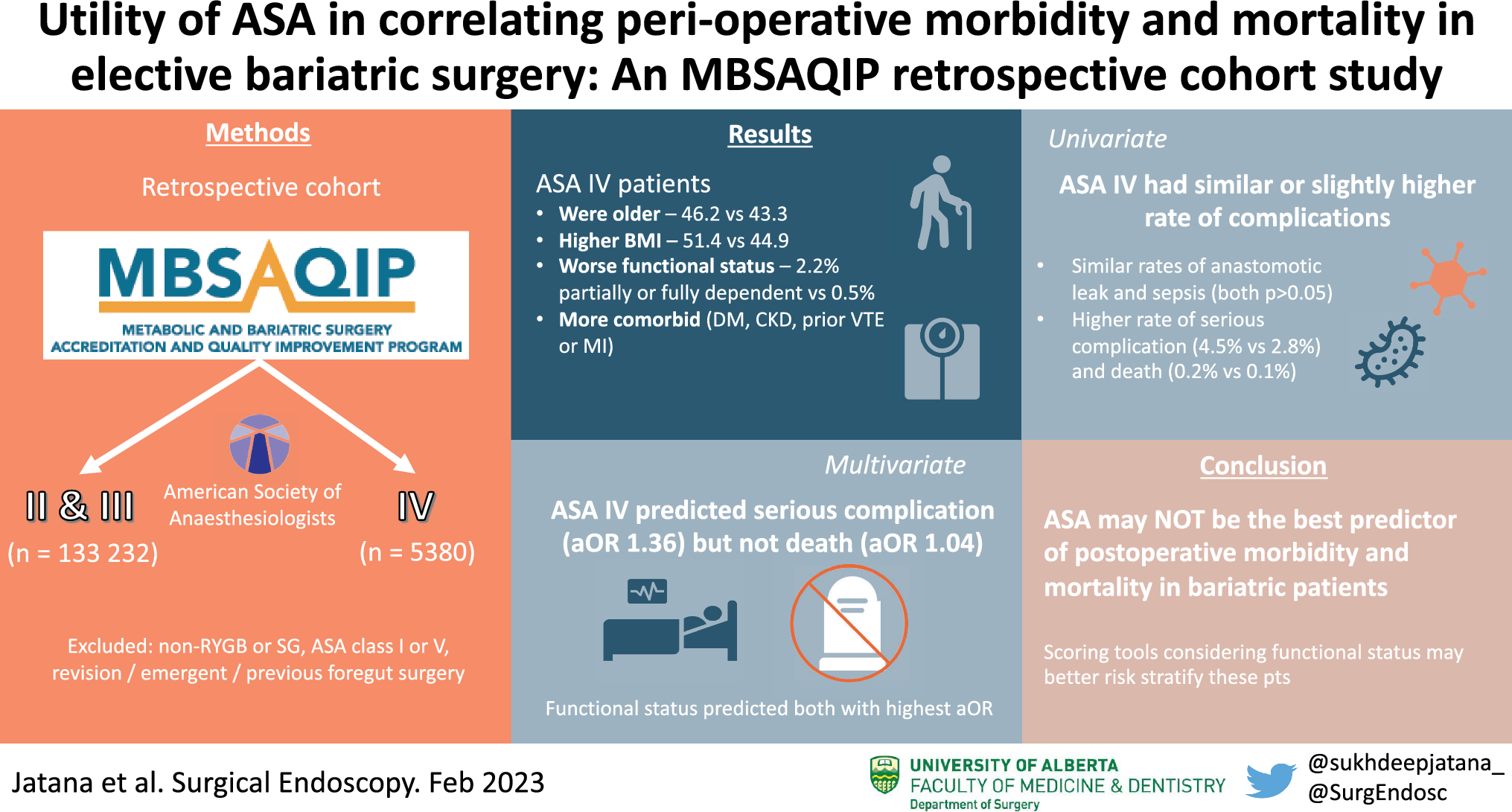 - Does ASA classification effectively risk stratify patients undergoing bariatric surgery: a MBSAQIP retrospective cohort of 138,612 of patients