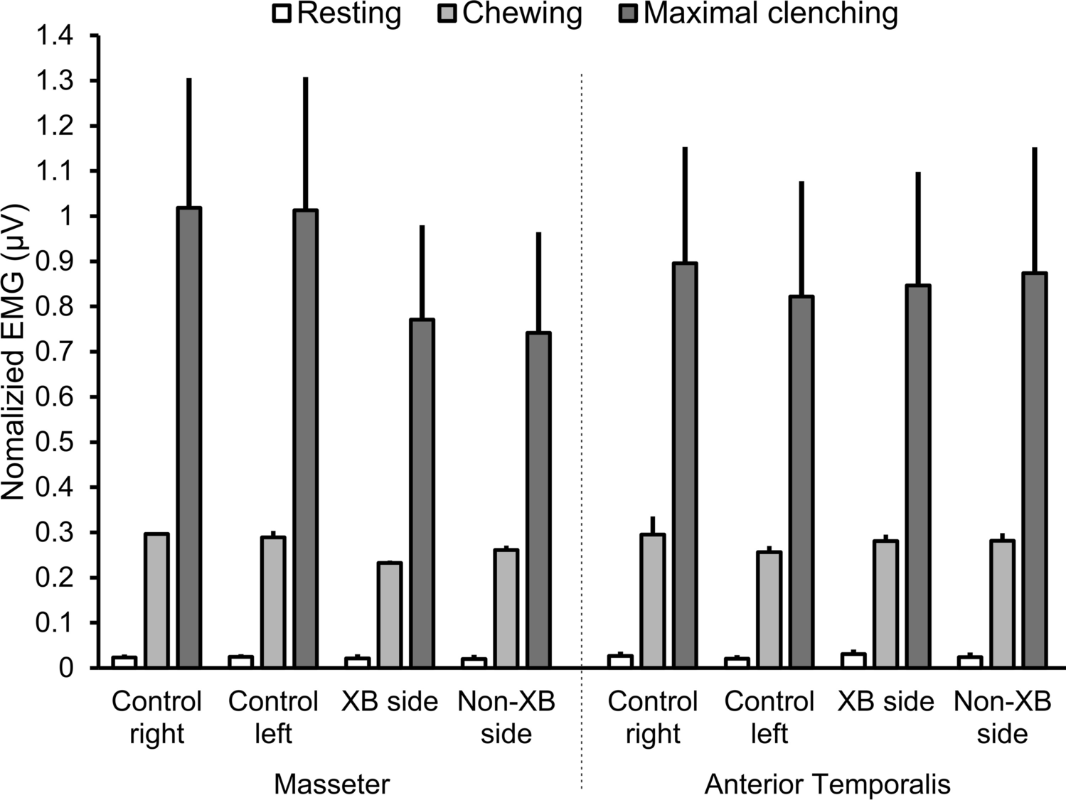 Ciavarella et al., (2012) | 15; 9 F:6 M; 9–14 yr | UPXB | NA | NA | 15; 7 F:8 M; 9–14 yr | EMG | Low |