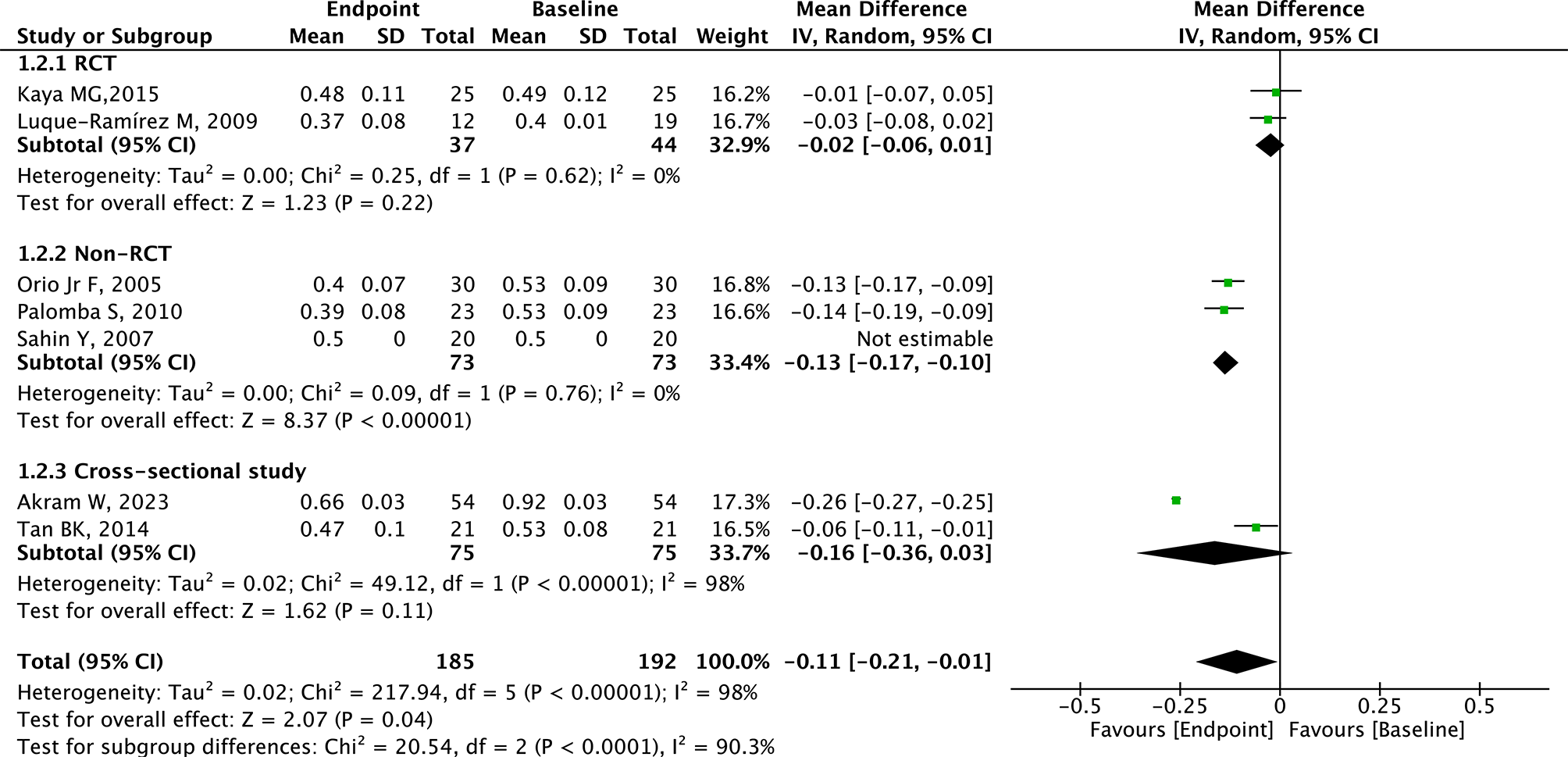 Heterogeneity posed a major challenge. Study types were considered one of the major sources of the heterogeneity. In terms of CIMT, cross-sectional studies were considered a major source of heterogeneity. Due to poor baseline comparability, cross-sectional studies are less suited for making strong causal inferences [