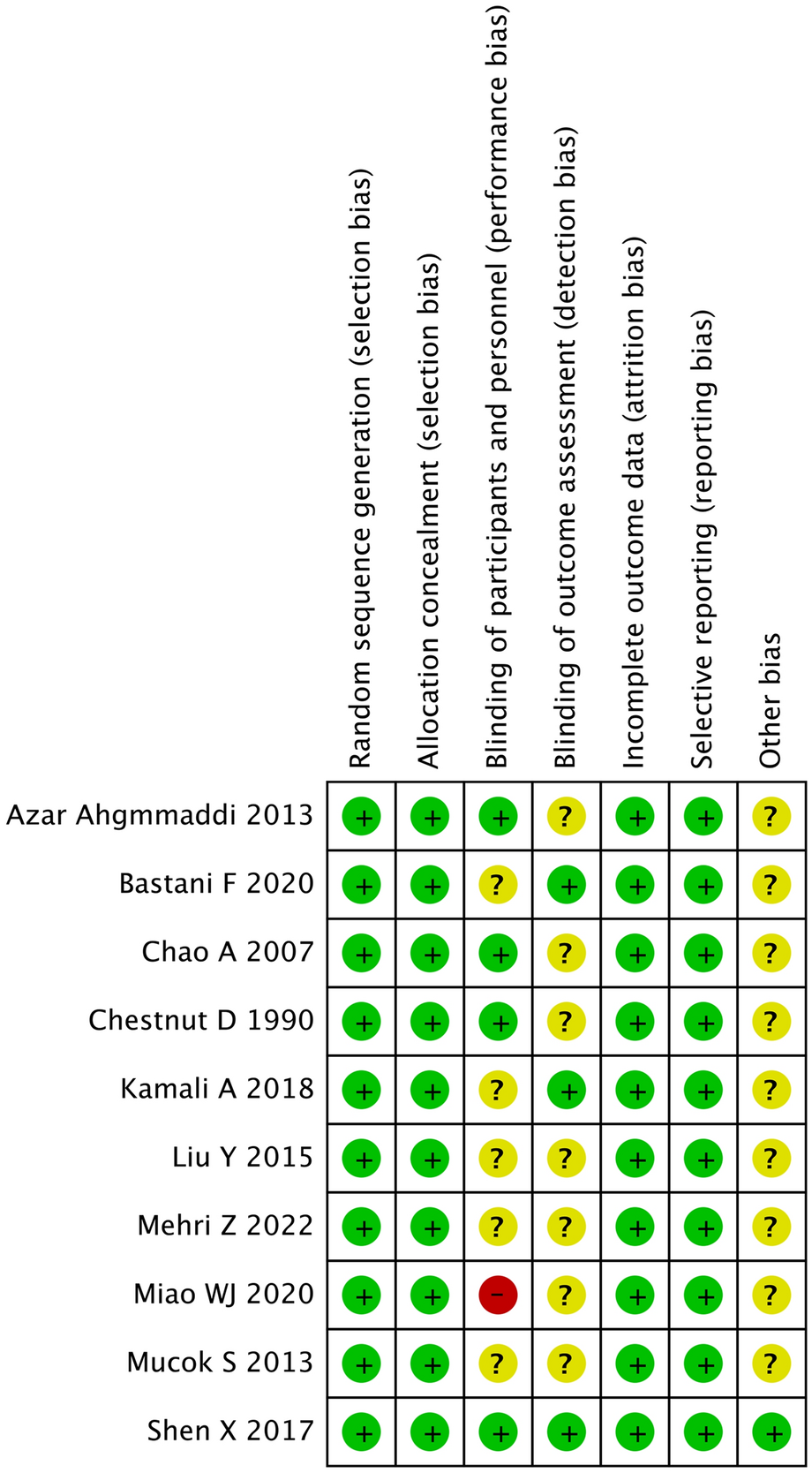 The two reviewers (Yan and Kan) independently reviewed the risk of bias of all included RCTs using the Cochrane Handbook for Systematic Reviews of Interventions tool containing seven items [