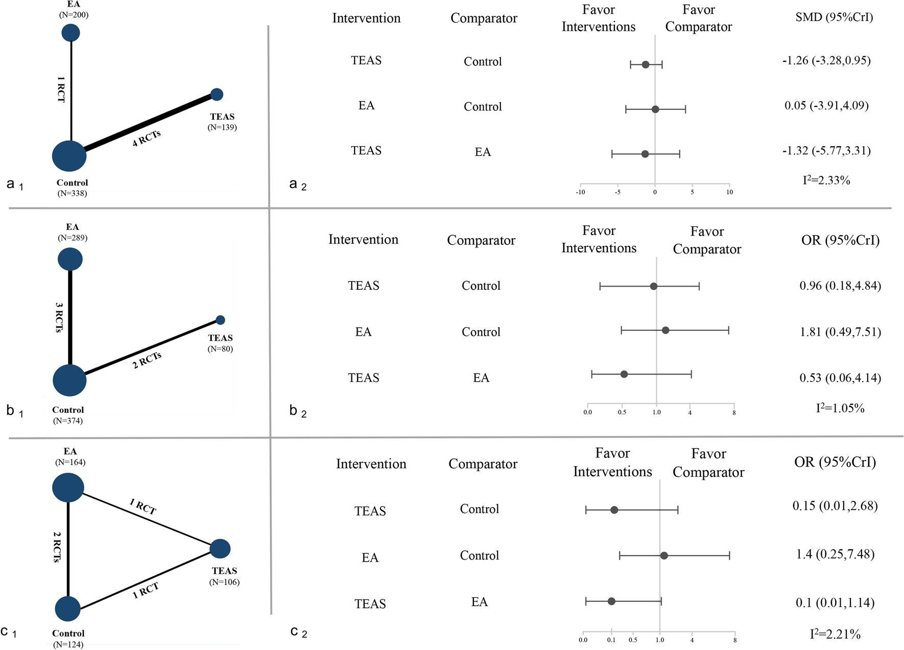 43], we found no NMA comparing TEAS with EA in the databases searched. Therefore, to the best of our knowledge, this NMA was the first to analyze the efficacy and safety of TEAS in labor pain.