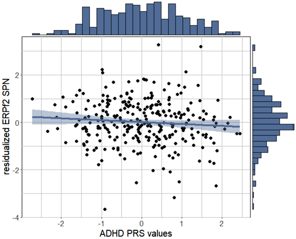 Of note, because behavioral performance may affect the obtained results, to determine whether findings held accounting for behavioral performance variables, we conducted sensitivity analyses with RT to target added as additional covariates to each model. The findings of the original and sensitivity tests were comparable, though in case of the association between ERPs of reward anticipation and ADHD PRSs, whereas the association was significant in the original model, it minimally surpassed significance threshold (0.053) in the sensitivity model, arguably due to the addition of extra variables attenuating power.