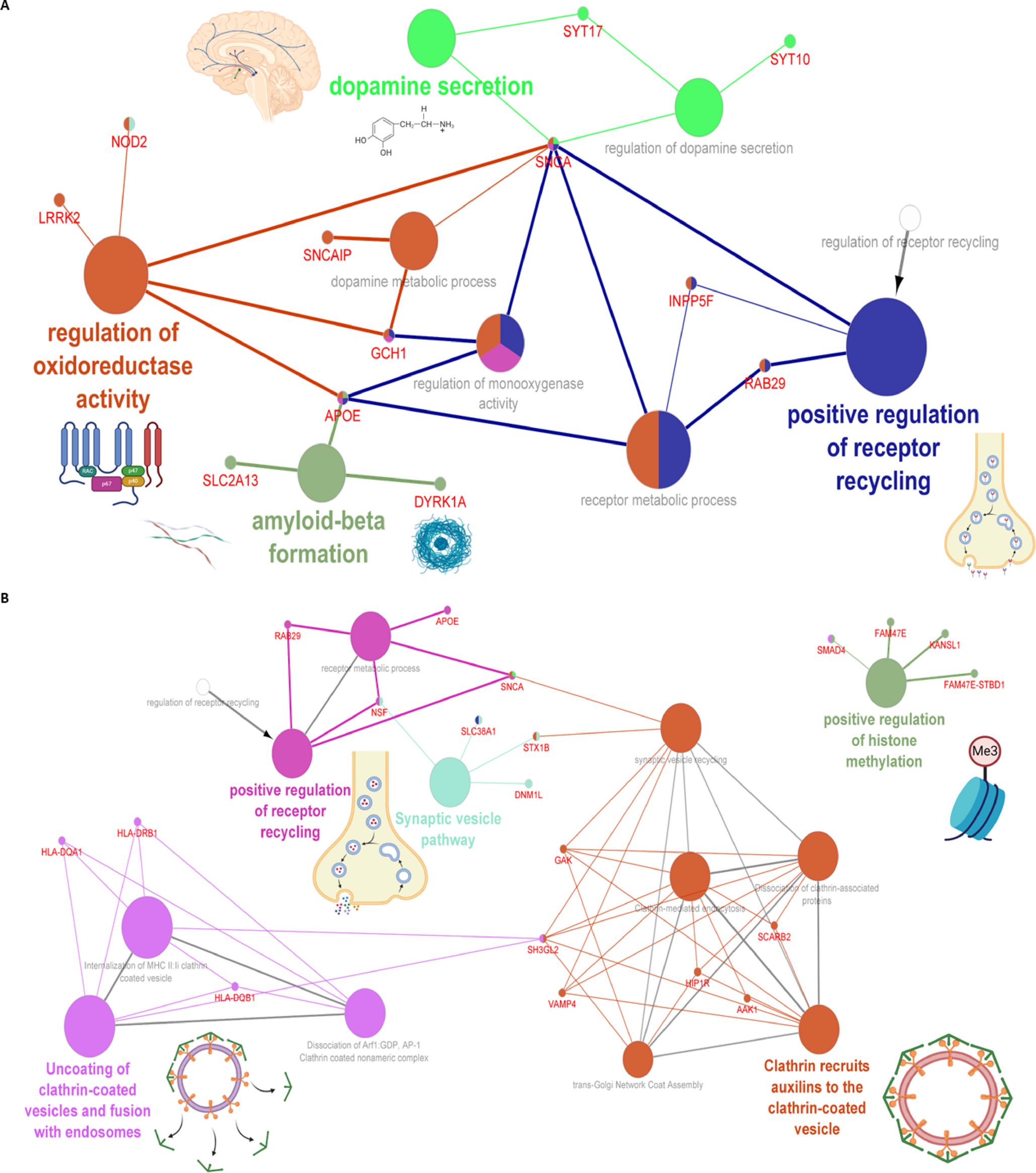 60]. In this study, various variants were implicated in the processes of dopamine transporters and release, cell adhesion, and receptor recycling, including