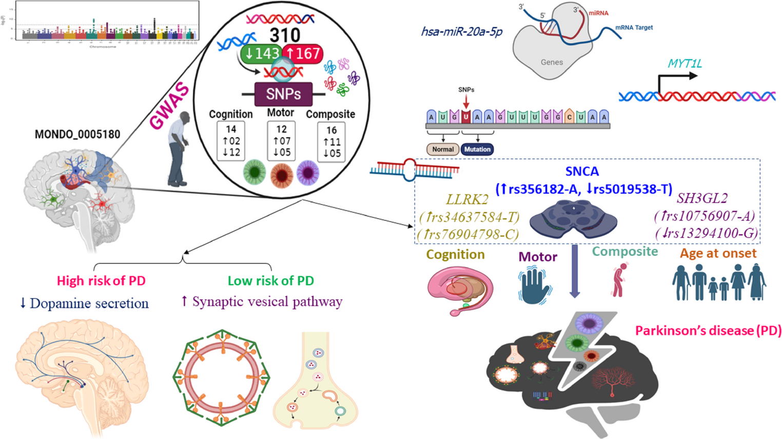 \(\uparrow\)rs4802739) underlying the pathogenesis of PD. It is plausible to explain that the dysregulation of the interaction between