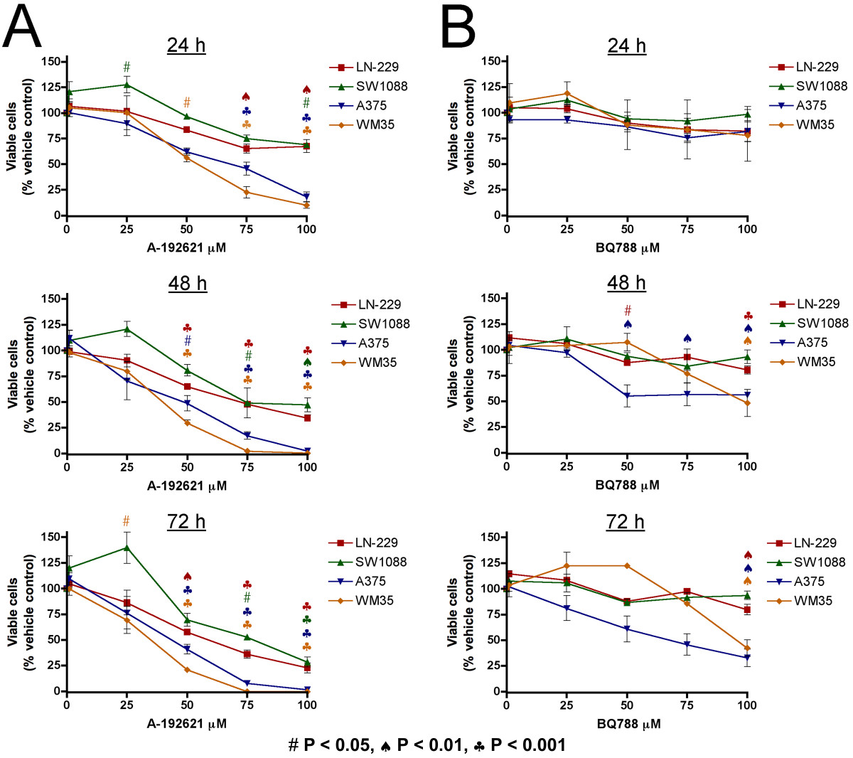 Our laboratory previously showed that high levels of BQ788 inhibit melanoma proliferation both