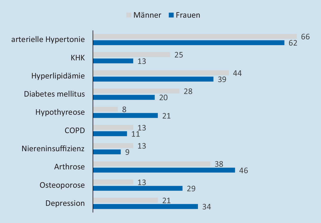 Frauen und Männer unterscheiden sich in ihrem Spektrum an Begleiterkrankungen