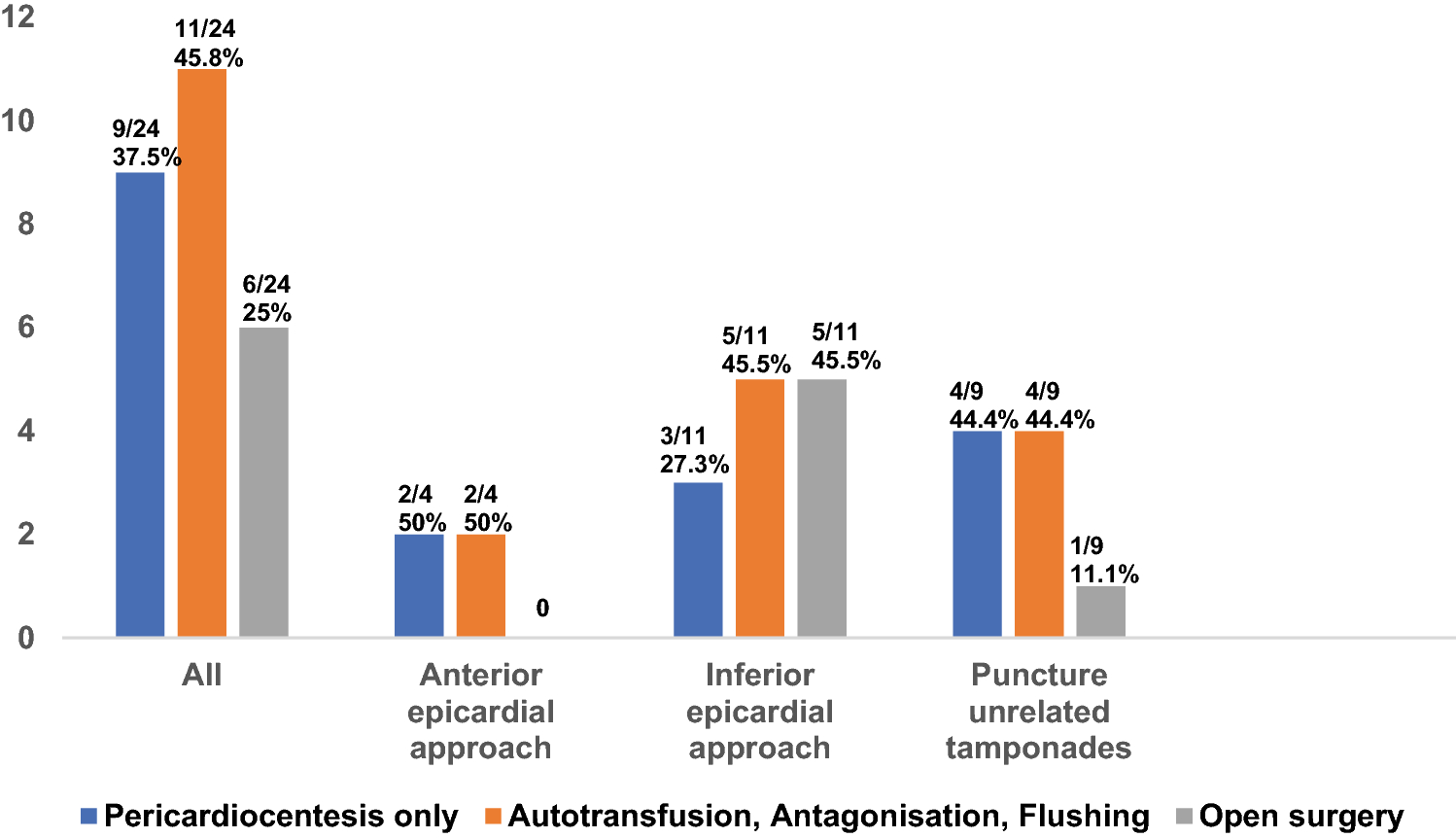 An aggravating factor in this context might be anticoagulation management. The risk of severe bleeding complications can overweigh the risk of thrombus formation. Therefore, if anticoagulation is needed, the possibility of administration after completed epicardial puncture should always be considered thoroughly and on an individual base.