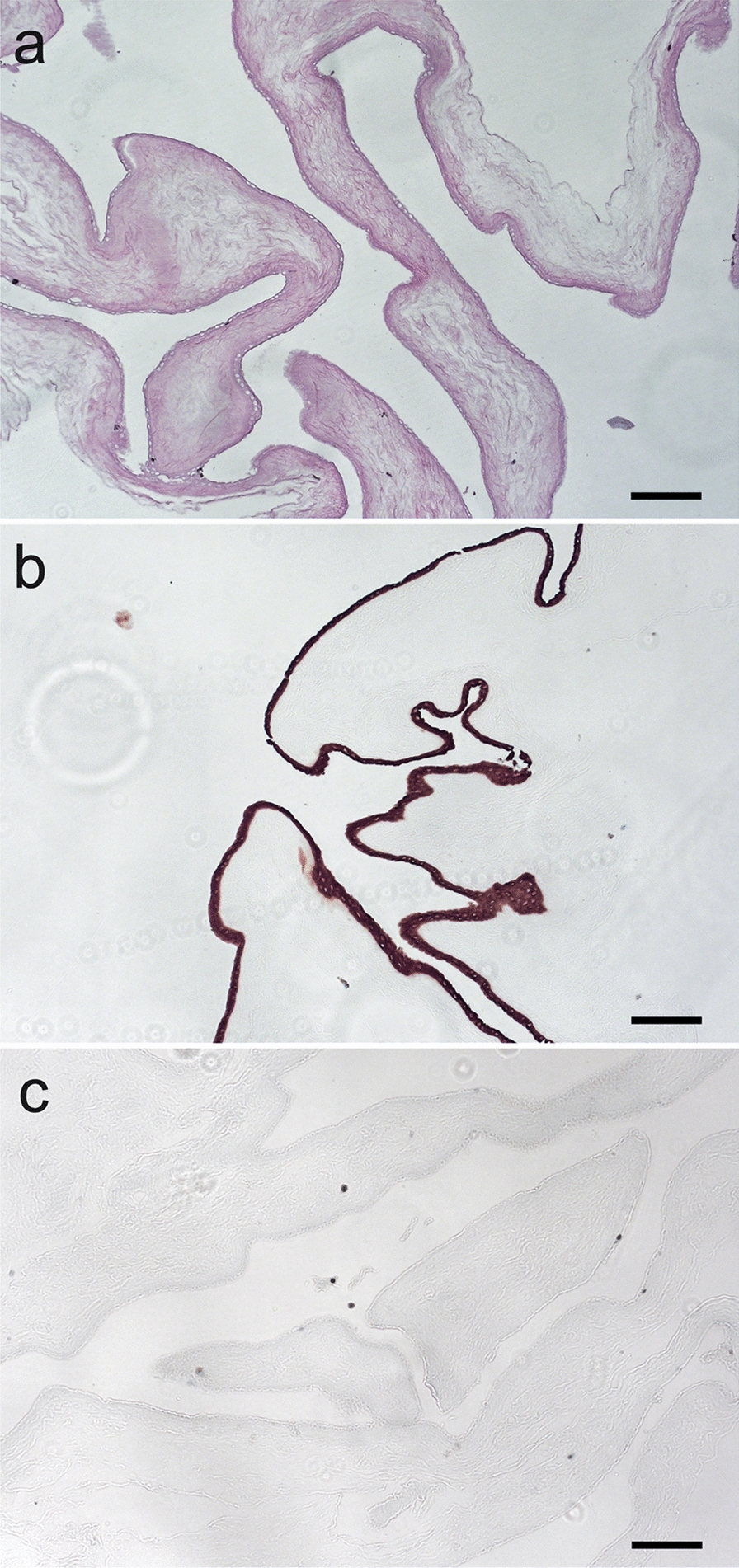 Explanted iehAM were fixed in 4% formaldehyde, embedded in paraffin, and stained with hematoxylin and eosin according to standard protocols. Additional sections were deparaffinized and pretreated with Ultra CC1 (Ventana Medical Systems, Tucson, AZ, USA) for antigen retrieval for anti-CD45, anti-CD20, anti-CD68, and anti-CD3 antibody staining and with target retrieval solution pH 9 (Dako, Heverlee, Belgium) for anti-pan-cytokeratin and anti-GFAP antibody staining. After endogenous peroxidase blocking, sections were incubated with 1:25 anti-CD45 (Dako, Heverlee, Belgium, clone 2B11 + PD7/26), 1:200 anti-CD20 (Dako, clone L-26), 1:1000 anti-CD68 (Merck, Darmstadt, Germany), 1:100 anti-pan-cytokeratin (Dako, clone 6F2), 1:200 anit-GFAP (Dako, clone AE1/AE3), and 1:20 anti-CD3 (Monosan, Uden, Netherlands, clone PS-1) antibodies. After incubation with peroxidase-labelled secondary antibodies, sections were visualized with a chromogen DAB (3,3′-diaminobenzidine) solution.