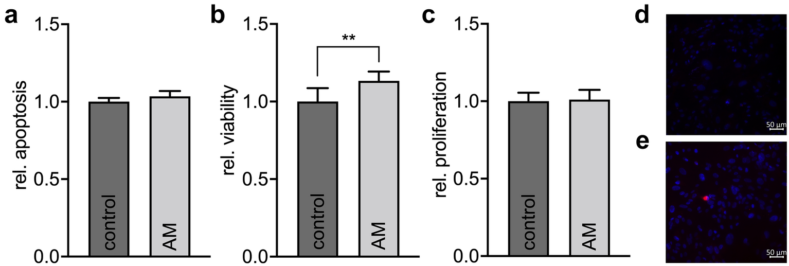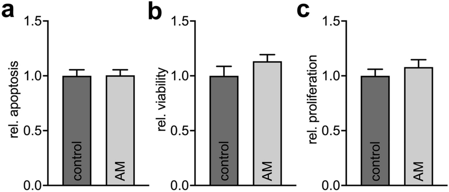 21]. In brief, 4000 cells/well were plated and cultured in serum-free cell culture medium with or without AM and 10 µM BrdU. After 72 h, cells were fixed and incorporated BrdU was detected by ELISA using an ELISA plate reader (Molecular Devices) at 450 nm.