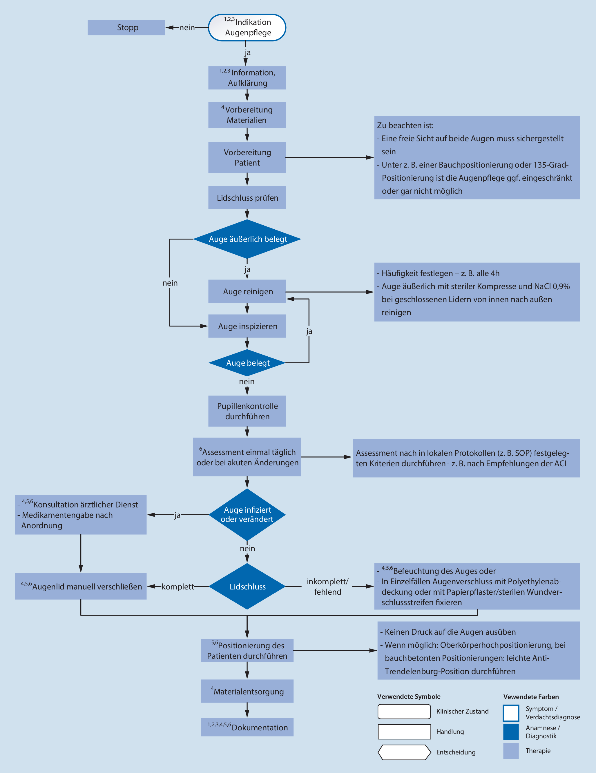Flussdiagramm zur Augenpflege bei kritisch kranken Patienten