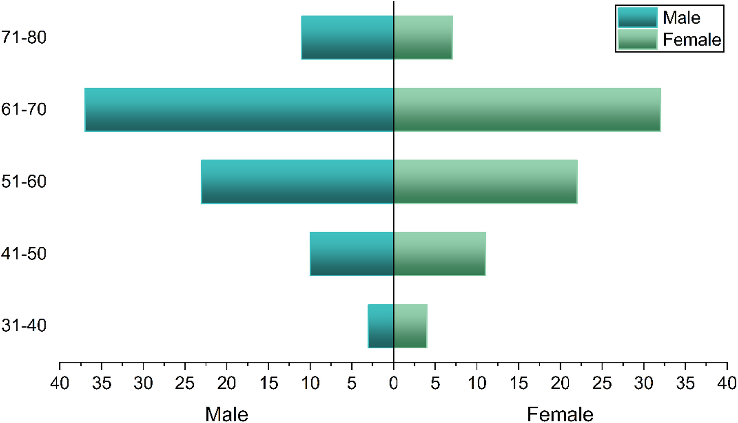 After the field specimen collection, the research team brought the weed specimens to the village of the informants for in-depth interviews. They also conducted participatory rural assessments with the villagers to cross-validate the information, enhancing the reliability of the data. The survey covered a total of 160 participants, including 84 males (52.50%) and 76 females (47.50%), with a balanced gender ratio. The age distribution showed distinct generational characteristics: the largest group was aged 61–70 years (69 people, 43.13%), followed by those aged 51–60 years (45 people, 28.12%), while only 7 people (4.38%) were aged 31–40 years, reflecting the fact that traditional knowledge is primarily held by the middle-aged and elderly groups (Fig. 2, for more detailed information, see Table 1).